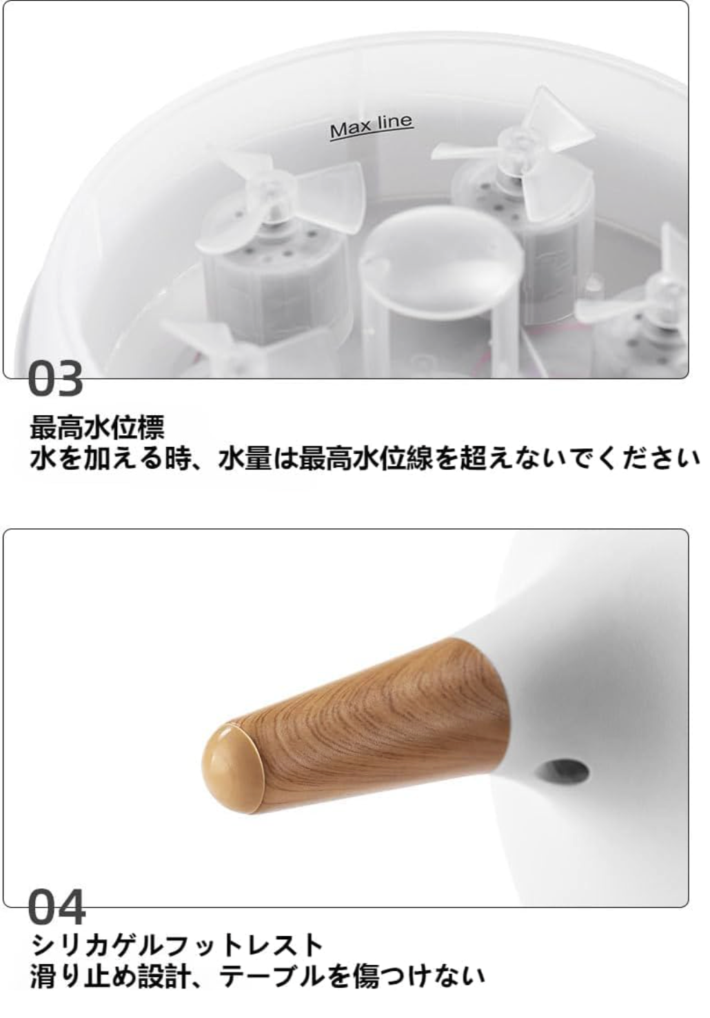 水タンク容量は250mlで、頻繁に水を補充する必要がなく、長時間ご使用いただけます。